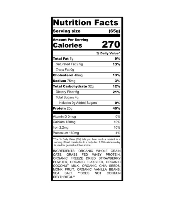 Freeze-dried strawberries bring bright, tart-sweet sparkle, rounded by real vanilla’s soft warmth. Grass-fed whey protein adds clean, silky strength—20g protein per serving—for a creamy, satisfying bowl with fresh berry lift and a smooth finish.